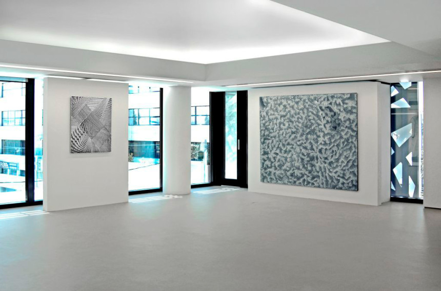 Visitors will notice the recurrence of aluminium and other metals. From Adam McEwen’s Big Stretcher (2011), through Heinz Mack’s and even Cady Noland’s pieces, to Charles Ray’s Sunflower Relief (2011), the exhibition gives voice to the conversation with industry that has inspired and often been the raison d’être of art in the twentieth century. Again, this conversation is most convincing when brought to life by grey. The colour that mirrors the materials, the mood, and the method of the industrial and post-industrial cultures in which we live.