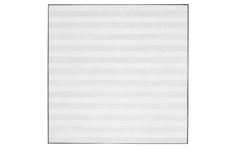 En Grisaille Nowadays illustrates the vital role of grey in the dynamic development of the history of art. We see this in the obvious reference to abstract painting in Gursky’s photograph. Agnes Martin’s Untitled, no. 5 (1985), for example, also takes us back to the painted expanse inviting contemplation toward Romantic landscapes of the midnineteenth century. Indeed, the three sections of the exhibition — Painting/Abstraction; Identity/Portrait; Landscape/Still life — remind us: for all of its understanding of the modern, industrial world, representation in grey begins and carries through it, the classical genres of painting.