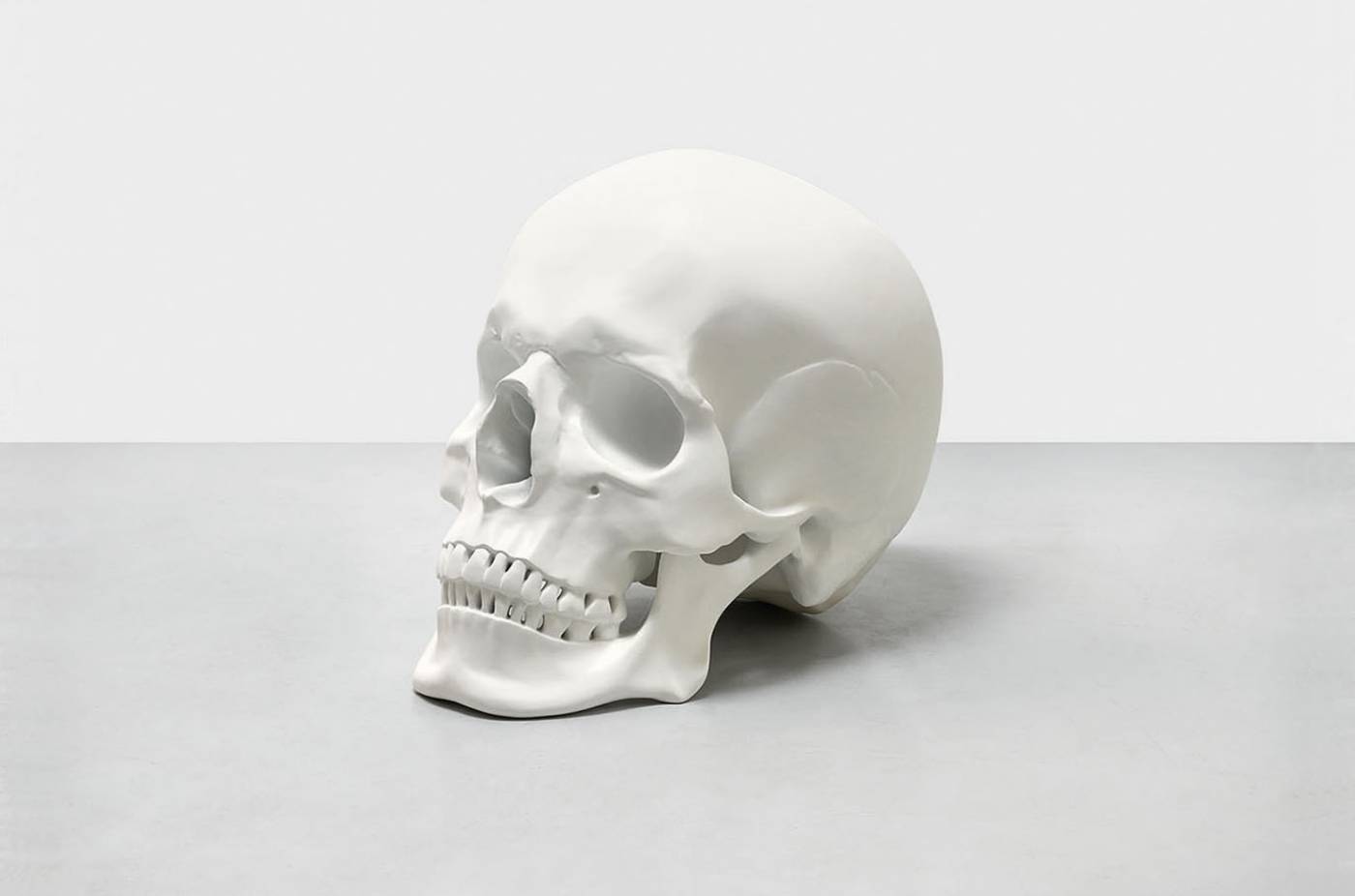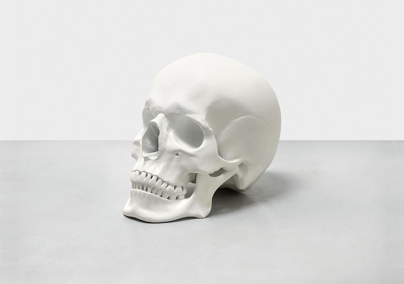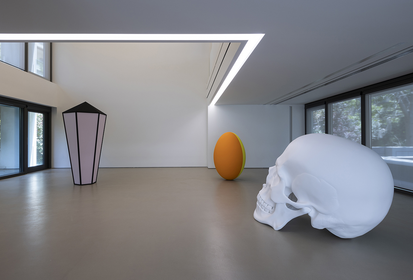 On the ground floor are three works—Ei / Egg, Laterne / Lantern, and Schädel / Skull—made to be exhibited together in 2017. Fritsch is known for grouping her works in relationships of concepts, colors, and forms that in effect establish their own environment of association. In this case, works that are deceptively simple in origin—a natural form, a somewhat historical-looking light fixture, and the familiar symbol of mortality—complicate one another, creating shifts in their more familiar meanings while bringing into play entirely new ones.