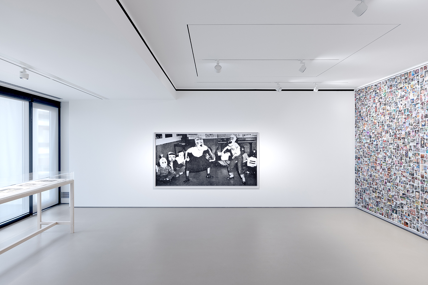 The exhibition Steven Shearer: Sleep, Death’s Own Brother takes as its point of departure Sleep II (2015), a monumental collage made up of thousands of found images—all of them JPEGs sourced online—depicting people asleep. A breathtaking tour de force balancing color, scale, structure, and subject matter, the sprawling mosaic shows a wide variety of somnolent states, from the peaceful and the comedic to the ecstatic and downright morbid. Titled after a line from Hesiod’s eighth-century BC epic poem Theogony (“Harmful Night, veiled in dusky fog, carries in her arms Sleep, Death’s own brother”), the exhibition revolves around this uneasy proximity (“brotherhood”) between death and sleep, a recurring trope in Shearer’s art. Built around the George Economou Collection’s substantial holdings of Steven Shearer’s work in painting and printed matter, Sleep, Death’s Own Brother proposes an in-depth look at the oeuvre of this Vancouver-based artist from the transgressive thematic perspective of the lifeless body, which is sometimes truly, sometimes only seemingly dead.