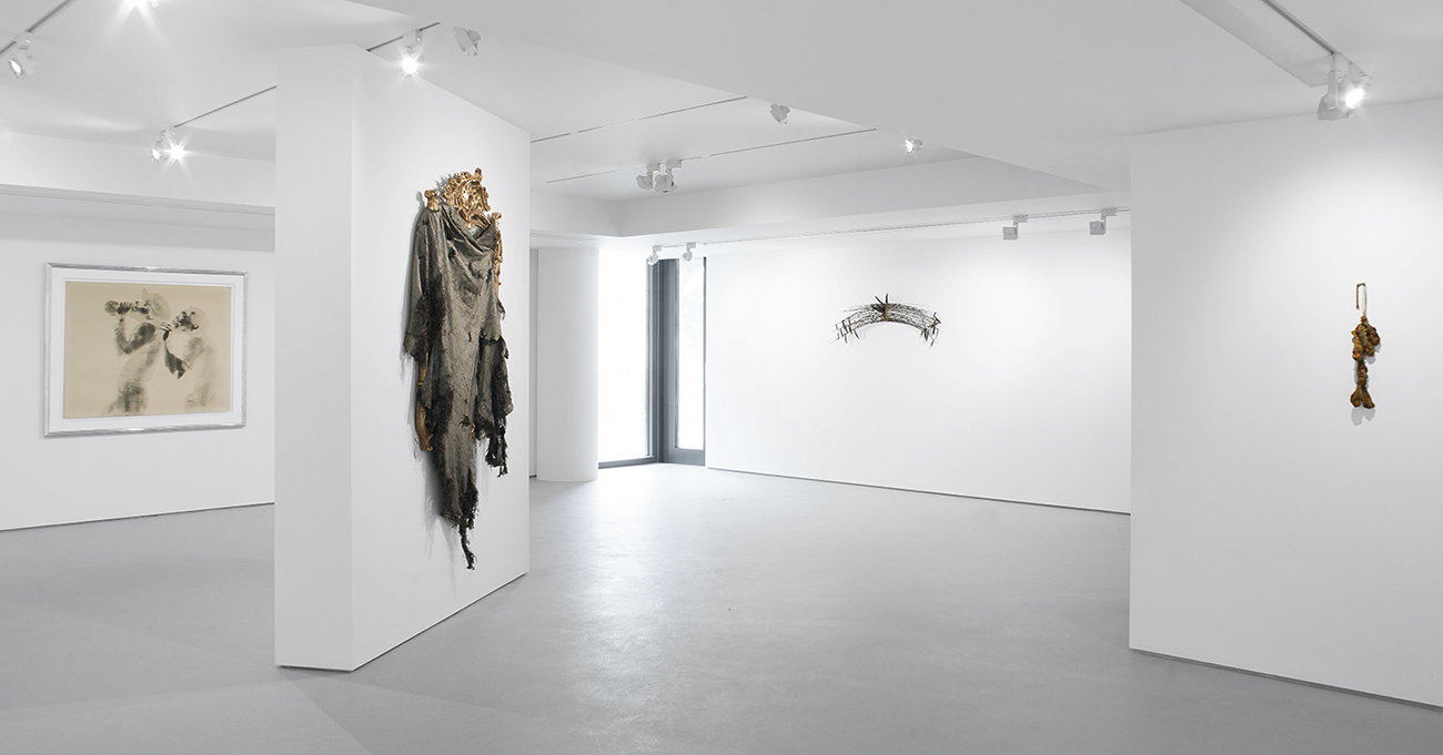 Hammons has been based in New York since the late 1970s, but spent time in Rome and Japan. His contact with both places will be evident in other works in the exhibition. His scepticism about the role given to ancient Roman culture as the foundation place of history led to sculptural works such as Roman Homeless; much more admiring of Japanese culture, he has incorporated materials such as kimonos into his pieces.