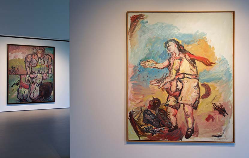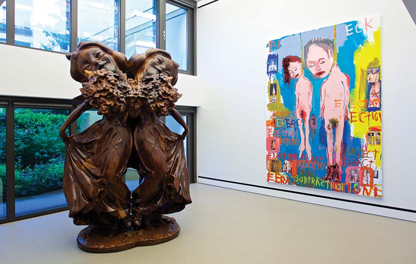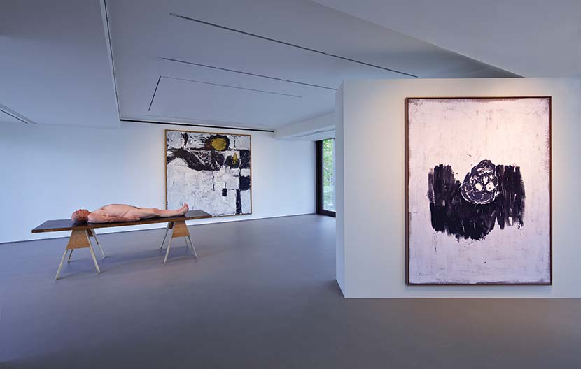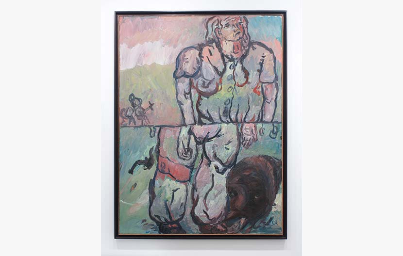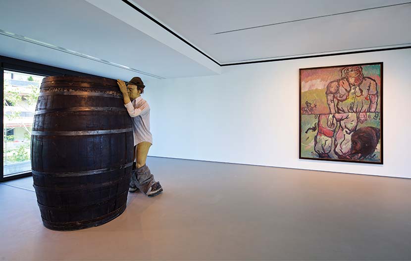 In the words of co-curator Carla Schulz-Hoffmann, “Inbetween brings together two exceptional artists in an exciting dialog with one another, two artists who could hardly be any more different. By focusing on the juxtaposition of several exemplary works in the exhibition, surprising parallels reveal themselves, not in terms of their artistic approach, but in how they work with similar issues. Both artists, the German Georg Baselitz and the American Paul McCarthy, react consciously and aggressively to their respective biographic, historical, and cultural surroundings, drawing from them the key coordinates for their artistic work. Their work revolves around themes such as identity, their location in the artistic and general social context, and basic existential questions. For both, the rejection of all constraints, such as fixed norms of the “zeitgeist” or one-sided artistic dogmas. Whereas Baselitz, however, unrelentingly processes the traumas of his specific history, McCarthy reacts with biting satirical exaggeration. Both create new forms of artistic expression beyond narrow, distorting limits: Baselitz by drawing on the medium of painting itself, McCarthy by drawing on the link between traditional and innovative, transdisciplinary artistic techniques, such as video or performance.”