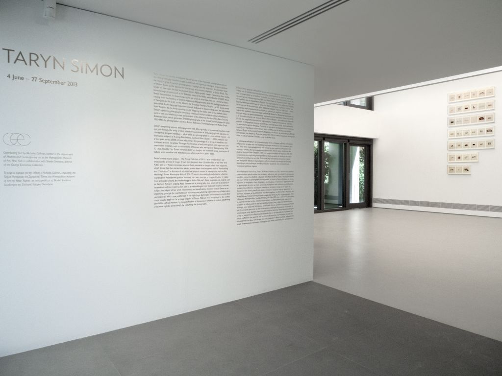 The George Economou Collection is delighted to announce the exhibition Taryn Simon, Works from the George Economou Collection. With contributing text by Nicholas Cullinan, curator in the department of Modern and Contemporary art at the Metropolitan Museum of Art, New York, and in collaboration with Skarlet Smatana, director of the George Economou Collection, the exhibition features a selection of works from Taryn Simon’s major projects such as The Picture Collection, A Living Man Declared Dead and Other Chapters I-XVIII, Contraband, and An American Index of the Hidden and Unfamiliar. Taryn Simon has quickly established herself as one of the foremost photographers of our era. Her arrestingly beautiful images, incisive eye and rigorously intelligent projects continue the work of great American photographers ranging from the objective, documentary style of Walker Evans to the appetite for the strange and uncanny displayed by Diane Arbus. The works on view at the George Economou Collection span the last six years of Simon’s career. These range from earlier projects such as An American Index of the Hidden and Unfamiliar of 2007, where Simon documented, in dispassionate style, an array of sites and cultural artifacts, such as the foundry of Smith & Wesson in Massachusetts (still the leading manufacturer of handguns in the U.S.), or the Alhurra TV Broadcast Studio in Virginia a U.S. Government sponsored, Arabic language television network dedicated to disseminating news and information from America to the Arab-speaking world. Simon’s deepening interest and engagement with differing modes of taxonomies manifests itself not just through the array of illicit objects in Contraband of 2010, ranging from cigarettes to counterfeit designer handbags all of which are photographed in a cool, clinical manner to the human subjects of A Living Man Declared Dead and Other Chapters I –XVIII, produced over a four-year period (2008-11) and which trace the genealogy of an array of bloodlines scattered around the globe.