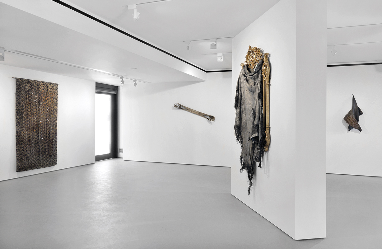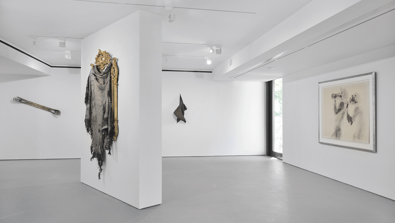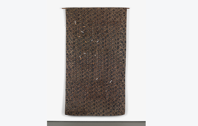 Hammons has been based in New York since the late 1970s, but spent time in Rome and Japan. His contact with both places will be evident in other works in the exhibition. His scepticism about the role given to ancient Roman culture as the foundation place of history led to sculptural works such as Roman Homeless; much more admiring of Japanese culture, he has incorporated materials such as kimonos into his pieces.